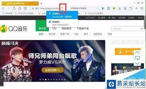 4、單擊網站信息后面的閃電小圖標,我們可以看到,它出現了兩種模式,一種是極速模式,一種是兼容模式,效果圖如下圖所示的圖形。