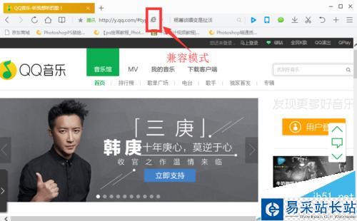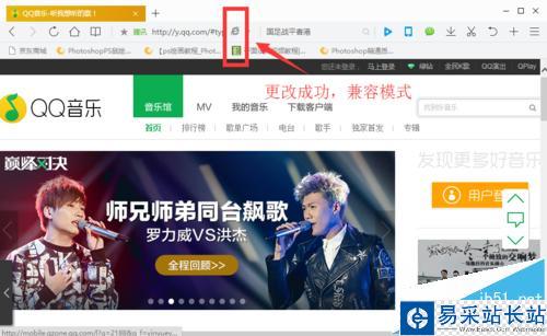 6、點擊兼容模式后,我們可以看到網站后面的小圖標就由閃電變成了IE的圖標,出現IE的小標志,就說明我們更改模式成功了。