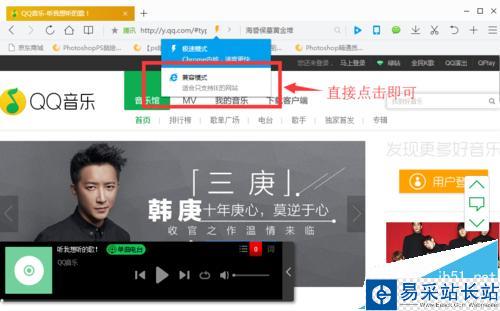 2、進入qq瀏覽器頁面后,我們任意進入一個網站,夏夏在這里就進入qq音樂的頁面,來為大家舉例說明吧!