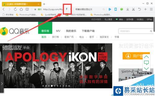 3、在音樂頁面下,我們注意觀察網站信息的后面有一個類似于閃電的小標志符號,如下圖所示。