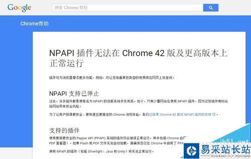 5、注意,上述支持NPAPI插件的方法,僅僅支持Chrome45以下的版本,Chrome45+的版本,已經(jīng)全部停止對NPAPI插件的支持。這時,我們只能坐等這些插件網(wǎng)站提供相應PPAPI版本的插件,或者臨時換用其他瀏覽器了。