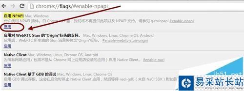3、下面,著重介紹如何在Google瀏覽器中臨時啟用 NPAPI 插件。地址欄輸入:chrome://flags/#enable-npapi