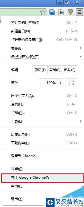 6、重啟電腦,打開Google Chrome瀏覽器。點擊“關于Google Chrome”,查看更新。