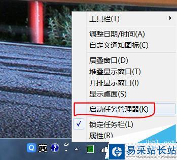1、右鍵點擊右下角的時間,選擇啟動任務管理器。