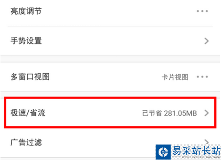 進入瀏覽器設置界面之后,找到并點擊“極速/省流”選項。