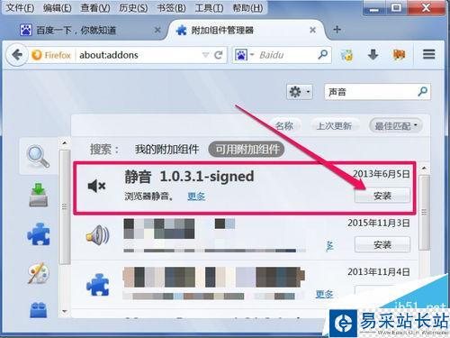 4、就能找到靜音插件,如下圖中的“靜音 1.0.3.1-signed”,點(diǎn)擊右側(cè)的“安裝”按鈕。