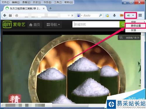 8、如果在播放視頻,或者打開網(wǎng)頁有不想聽聲音,就可以點(diǎn)擊倒三角圖標(biāo),在其中選擇“靜音設(shè)置”,或者直接點(diǎn)擊“喇叭”即可。