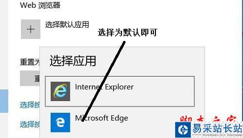 點擊選擇默認應用,彈出瀏覽器選擇菜單,選擇Microsoft Edge,