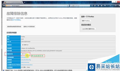 2、在故障排除信息頁面中可以找到配置文件所在文件夾的位置信息。如圖,單擊“顯示文件”。