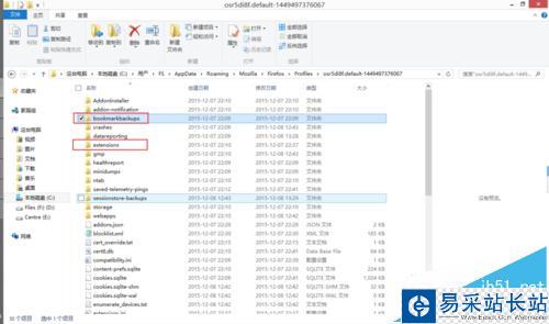 3、新打開的文件夾中包含了許多的文件和文件夾,bookmarkbackups 文件夾保存了我們的書簽,extensions 文件夾保存了我們安裝的擴展。