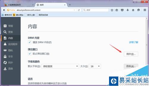 5、單擊“阻止彈窗”右側(cè)對應(yīng)的“例外”按鈕。