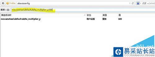 2、在搜索欄輸入:mousewheel.default.delta_multiplier_y 默認值是100. 右擊它修改它100-1000之間。效果顯而易見的啊!