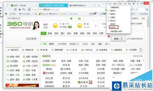 2、我們要找到狀態(tài)欄,如果沒有那么打開狀態(tài)欄,右擊菜單欄左側(cè)空白處右擊選擇“狀態(tài)欄”