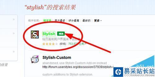 3、搜索之后可能出現(xiàn)的結(jié)果并不很多,這時(shí)我們點(diǎn)擊查看全部的結(jié)果,在新出現(xiàn)的網(wǎng)頁中找到Stylish,并添加。