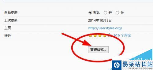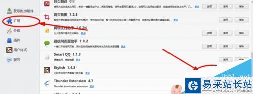 4、這時(shí)我們回到下圖所示的地方,點(diǎn)擊擴(kuò)展,找到Stylish,點(diǎn)擊選項(xiàng)。進(jìn)去之后點(diǎn)擊管理樣式