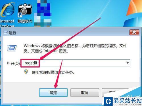 2、在運行窗口,輸入regedt命令,確定,就進入注冊表編輯器了。