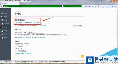 4、打開(kāi)隱私,首先勾選這個(gè)項(xiàng)目下的請(qǐng)勿跟蹤——要求網(wǎng)站不要跟蹤您。注意勾選這個(gè)相當(dāng)重要,最好勾選。