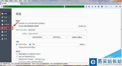 3、點(diǎn)擊打開(kāi)選項(xiàng),在左側(cè)找到隱私,選擇。