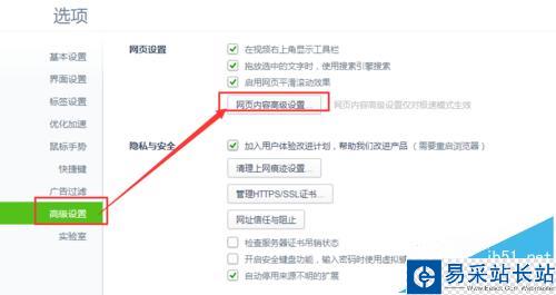 2、由于視頻使用的依然是flash插件支持,所以我們可以在flash插件方面想辦法禁用它。打開瀏覽器選項。