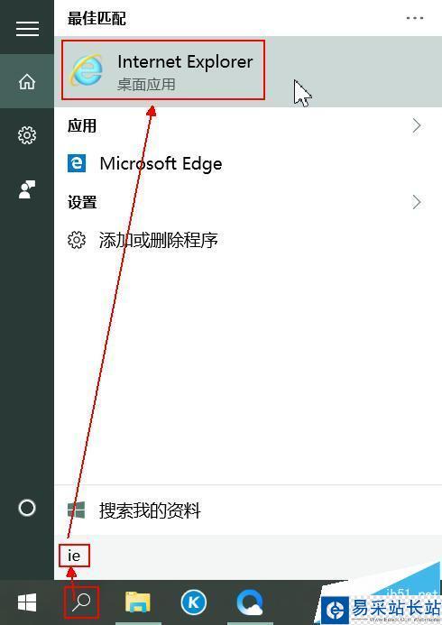 5、為了把書簽導入IE,在桌面搜索:IE,然后點擊打開