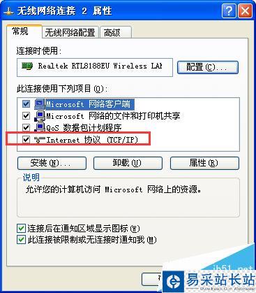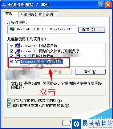 3、選擇internet協議(TCP/IP),雙擊打開