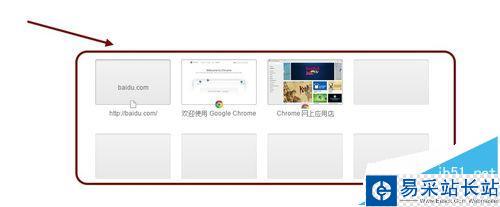 8、這時,再次打開Chrome瀏覽器新建的新標簽頁,可以發現快速撥號的縮略圖變成默認的了。