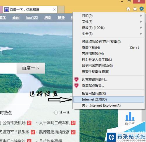 3、在設置下拉菜單中,選擇internet選項。如下圖