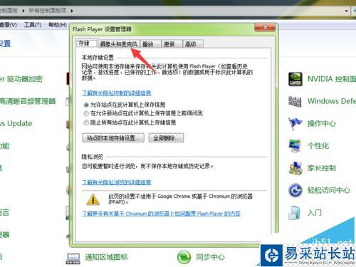4、在彈出Flash Player的設置管理器之后,在上面的一排菜單之中選擇攝像頭和麥克風選項。