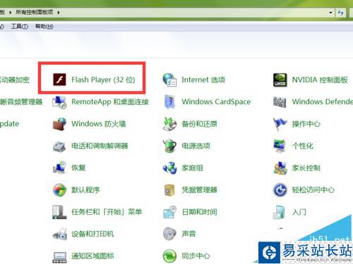 3、在彈出的控制面板中選擇小項目,然后點擊其中的Flash Player。