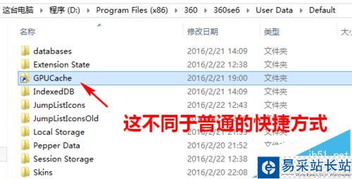 5、回車之后,在Default目錄下即會生成一個帶箭頭的目錄名GPUCache,即表示更改已經成功。請注意,此目錄不是普通的快捷方式。
