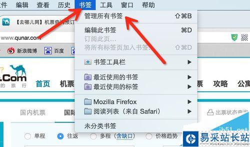 7、當我們收藏了很多網頁之后,可以通過上方“書簽“菜單欄來管理你所有收藏的網頁,也很方便。