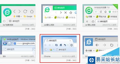 4、這時,我們便可以看到Chrome皮膚了,點擊它即可給360安全瀏覽器換上Chrome皮膚。