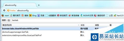 6、找到 browser.tabs.closeWindowWithLastTab。一般來說是第一項
