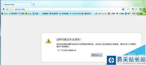 3、在地址欄輸入:about:config,打開火狐配置中心