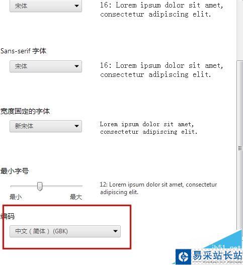 5、在彈出的窗口中找到最后一項“編碼”,一般來說,默認的都是“中文(簡體)(GBK)”,我們點擊右邊的小箭頭,在下拉列表中找到“Unicode UTF-8”,選擇它,并確定,重啟瀏覽器后,默認編碼格式就編程了UTF-8了,UTF-8是萬國碼,用它就不會出現亂碼了。