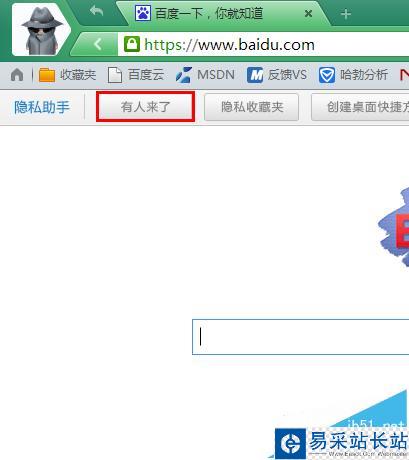 5、現在,你用新打開的瀏覽器窗口去訪問任何你想訪問的網站,就不會在網站上留下痕跡了。同時,為了避免讓周圍的旁人發現,你還可以隨時點擊地址下的“有人來了”按鈕,將隱私窗口藏到任務欄的托盤中,以便等到旁人離開后再次打開瀏覽。