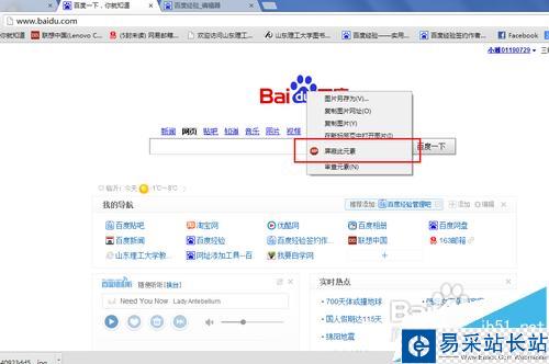 8、在網(wǎng)頁中直接選擇屏蔽的元素。在網(wǎng)頁中我們發(fā)現(xiàn)自己想要進行屏蔽的元素,右擊鼠標就會出現(xiàn)Adblock Plus屏蔽功能。使用即可。