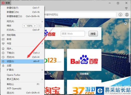 3、在彈出的“菜單”選項(xiàng)框中,點(diǎn)擊“設(shè)置”命令選項(xiàng)。如圖所示;