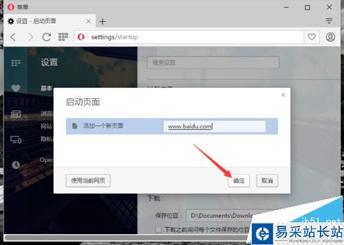 7、在啟動(dòng)頁(yè)面中,并在里面填寫(xiě)需要設(shè)置為主頁(yè)的網(wǎng)址即可。如圖所示;