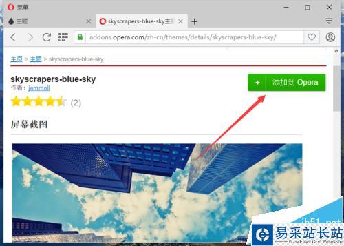 7、在選中的皮膚對話框中點擊“添加到Opera”按鈕。如圖所示;