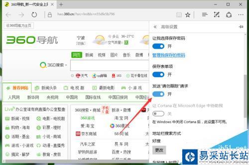 6、在“高級設置”選項卡中,找到“發送請勿跟蹤請求”選項并將其打開即可。如圖所示;