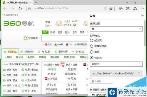4、點擊“設置”命令選項后,這個時候會彈出瀏覽器“設置”對話框。如圖所示;