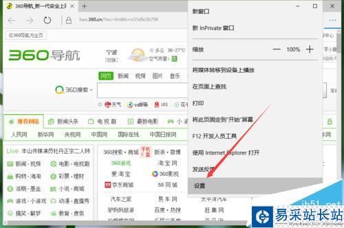 3、在彈出的菜單選項中,點擊“設置”命令選項。如圖所示;