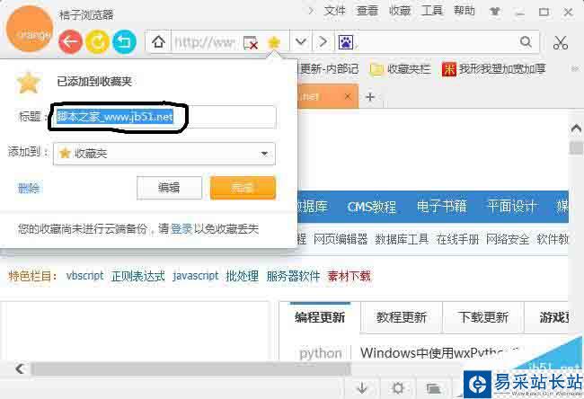 以上就是桔子瀏覽器收藏夾的使用方法,不會的朋友可以留言,我們會繼續幫您解答,喜歡的朋友轉載請注明文章來源錯新站長站,謝謝支持。