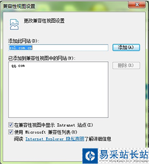 2、將該行網站添加到“兼容性視圖中的網站”;