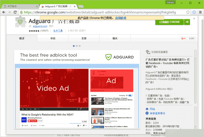 不過這些子目錄的名稱看上去就是一串沒有規(guī)律的字符,那么如何知道每一個子目錄里面,保存的是那一個擴展文件的信息呢?首先打開到谷歌瀏覽器的應用商店,任意點擊應用商店首頁中的一個擴展圖標,在彈出的頁面就可以看到該擴展文件的詳細信息。