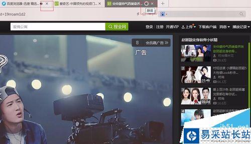 2、然后隨便打開一個有聲音的頁面,比如說看個視頻。操作很簡單,只要把鼠標(biāo)放到標(biāo)簽頁上面,鼠標(biāo)左鍵點擊當(dāng)前標(biāo)簽頁的小喇叭按鈕即可靜音,反之就是取消靜音。