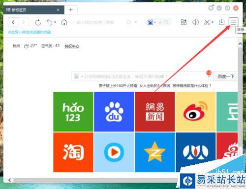 2、在打開(kāi)的瀏覽器界面,點(diǎn)擊菜單欄上的“菜單”圖標(biāo)按鈕選項(xiàng)。如圖所示;