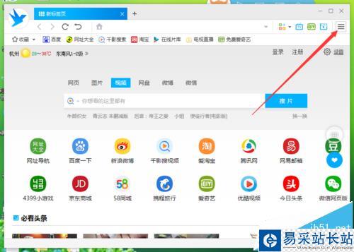 2、在打開的瀏覽器界面,點擊右上角的“三橫”菜單圖標按鈕。如圖所示;