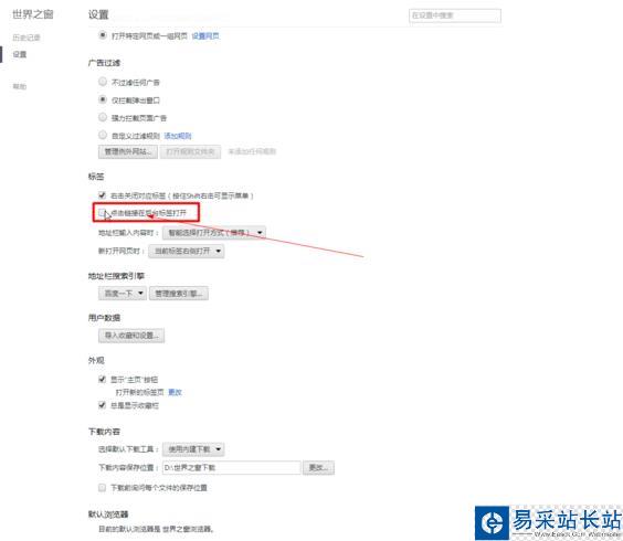 6、再打開標簽頁就可以自動跳轉了,如果你想讓他不自動跳轉就把那個“點擊鏈接在后臺標簽打開”前的勾打上!